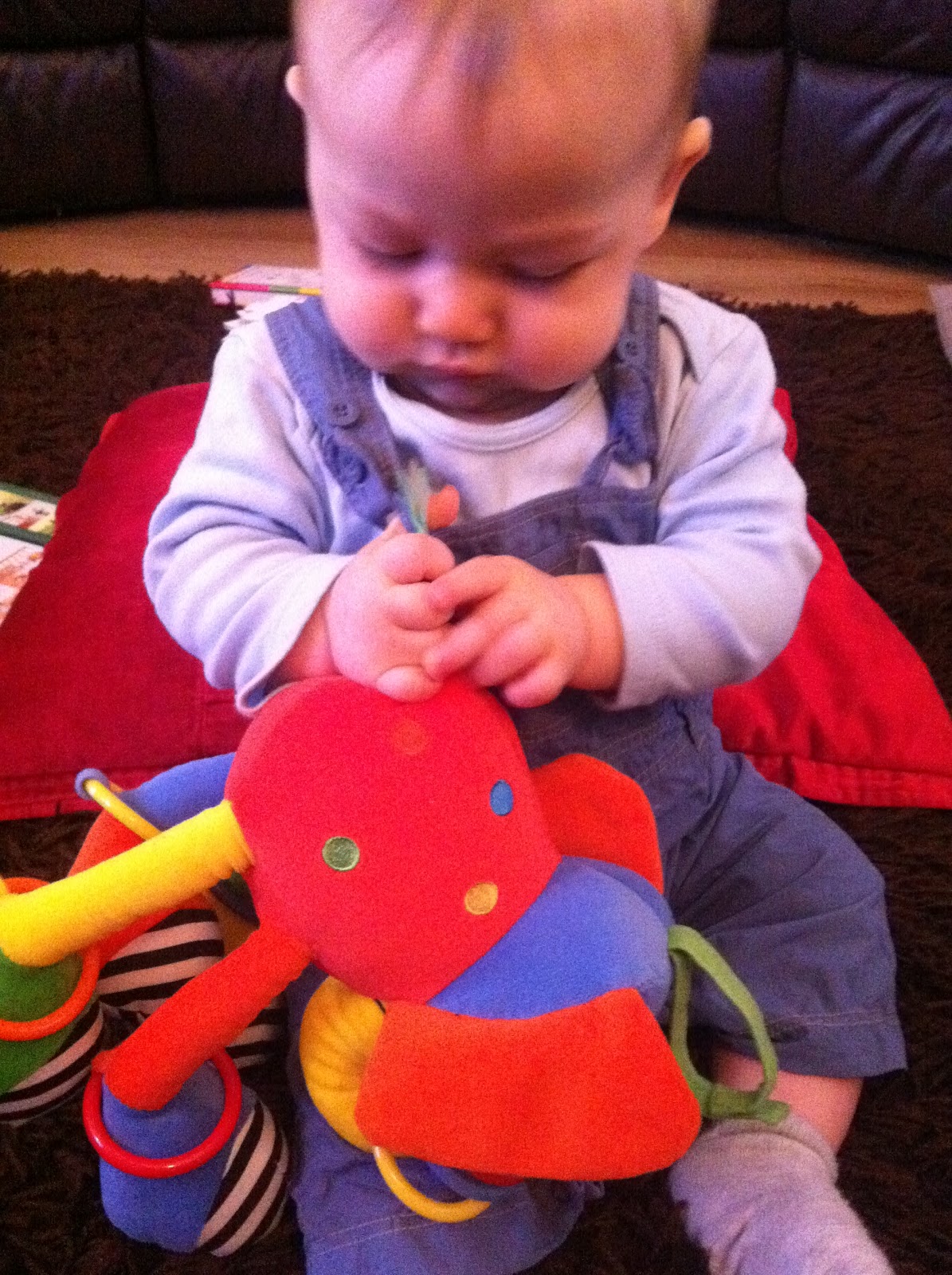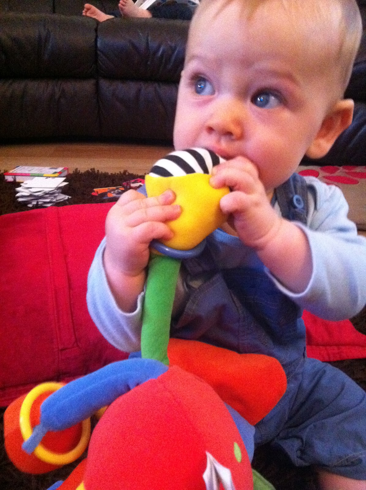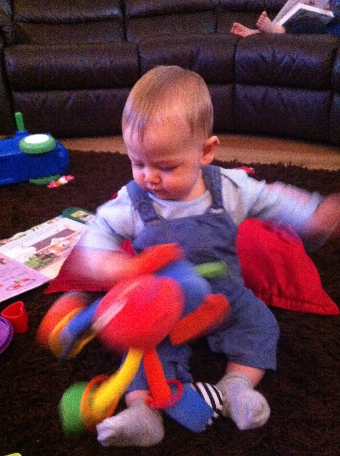 I have felt a little guilty at times about the fact that Jenson hasn’t had the ‘new’ toys that Burton had as a baby. Its just that the toys we have are in such great condition there hasn’t been the need to buy anything for him. He was given his own cuddly toys as gifts when he was born, but they far are too nice to leave out downstairs for playing with, and besides Burton would probably end up adopting them for himself!