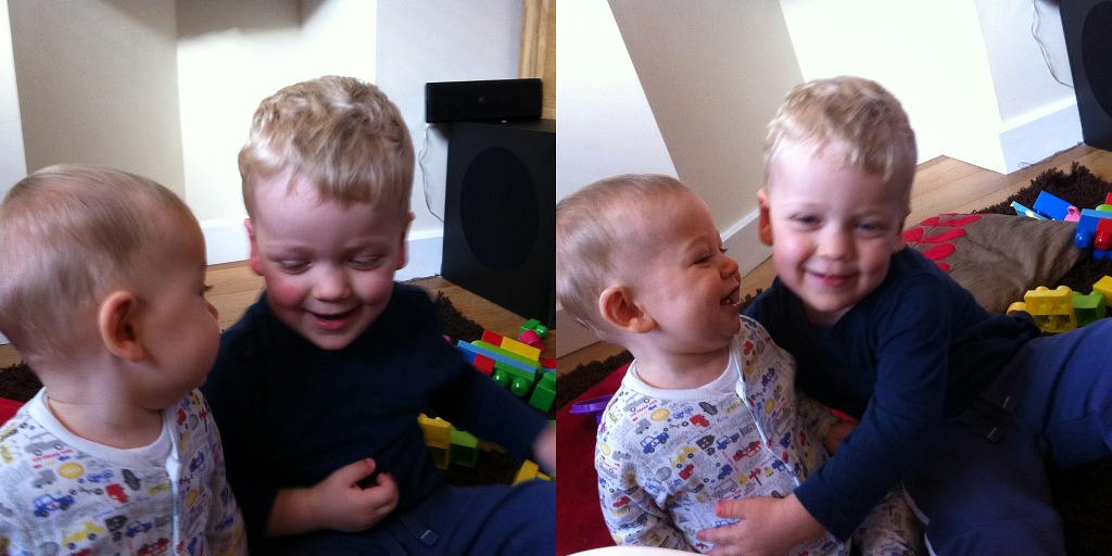 As I briefly mentioned in my post last week regarding the 20 month age gap between my two children, I have noticed that over the last week Burton and Jenson have started playing together now.