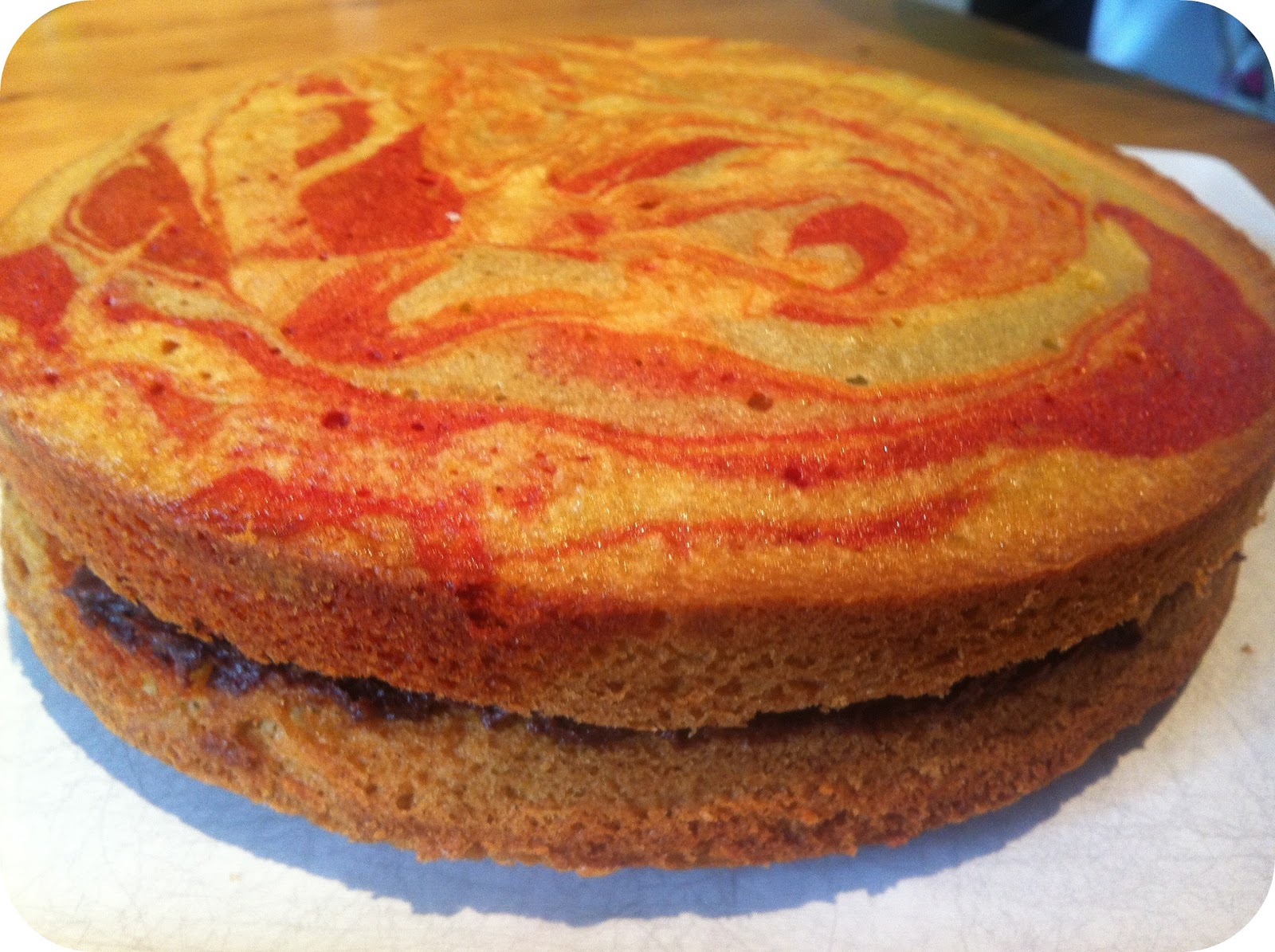 That looks fab! I once tried to make red car shaped cakes and the outside just went all brown like normal cake, I was so disappointed. Your swirly cake looks great though. xx