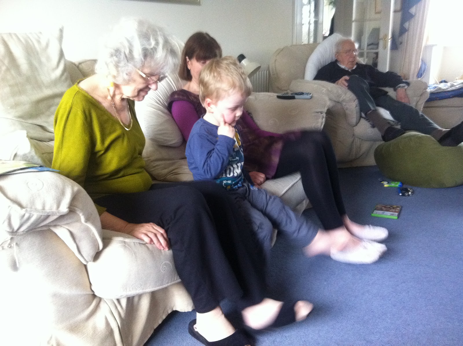 After lunch he and my mum and Nan watched Happy Feet and Burton showed them his groovy happy feet moves 🙂