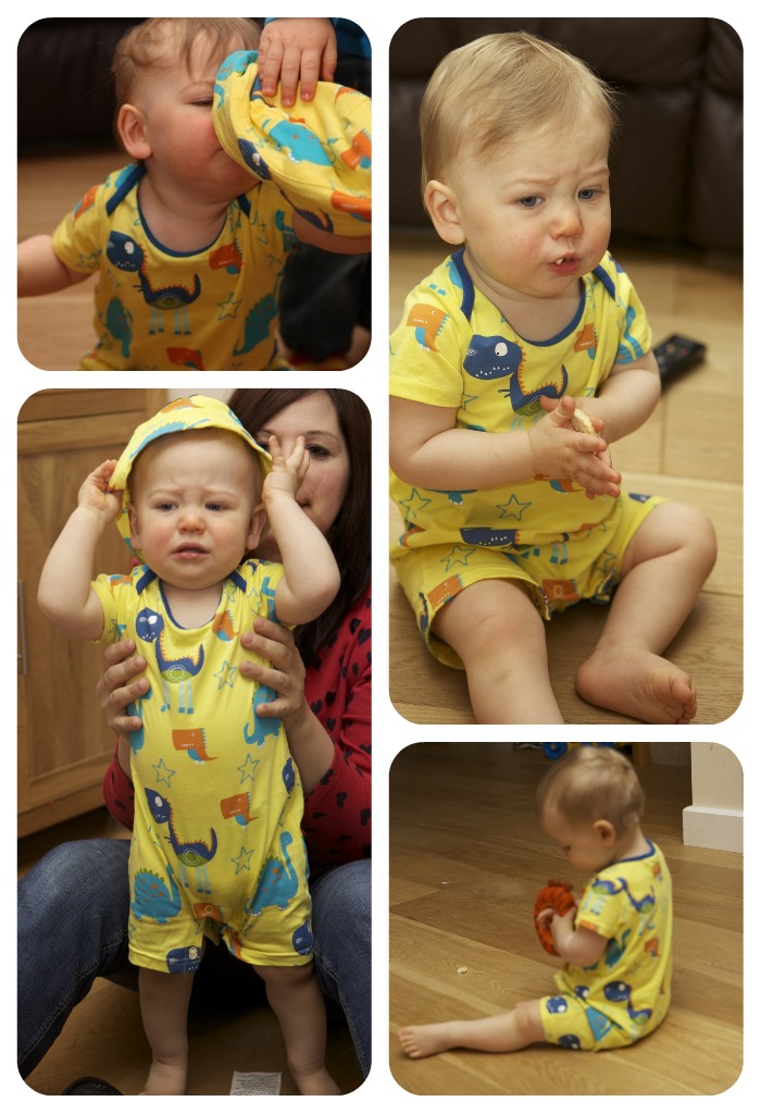Asides from Emma Bunton’s clothing ranges, Argos also sells other brands and so we were also sent a shortie romper suit with a matching hat for Jenson to try out.
