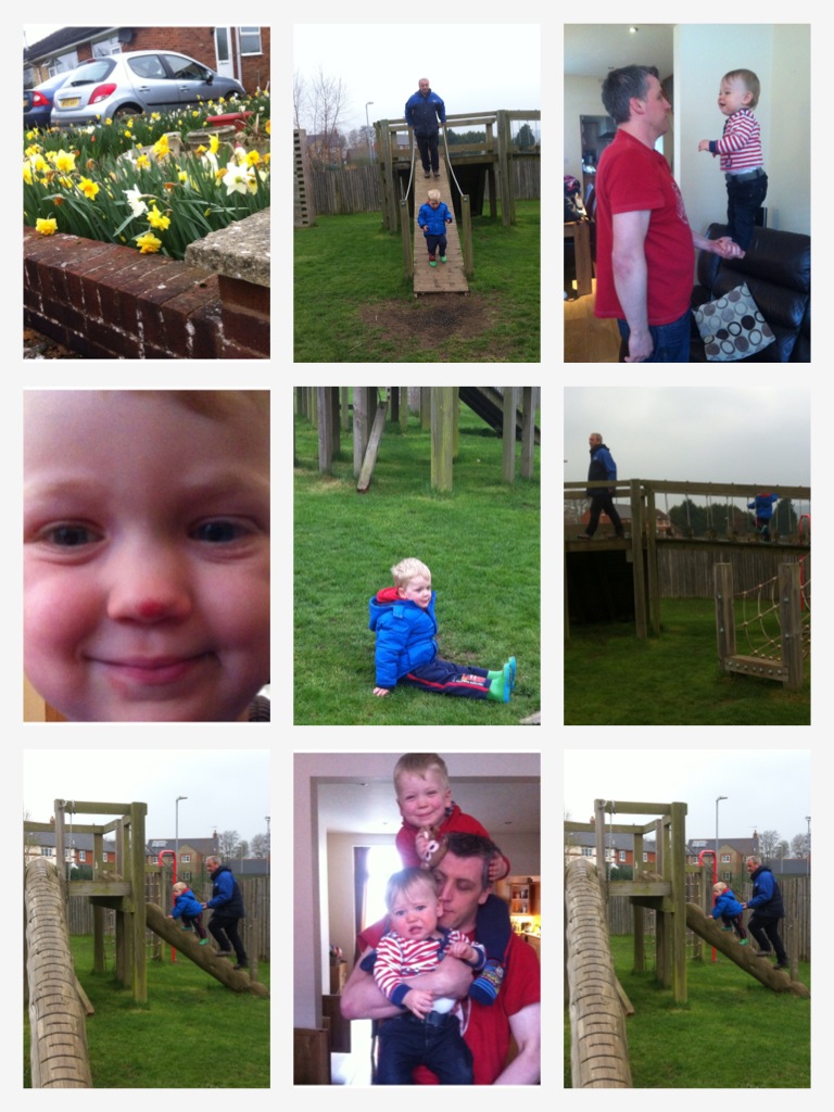 We ended up going to visit my Mum and Step Dad which I didn’t arrange to do until I phoned her after breakfast! We played indoors and then in the afternoon we went for a walk and too the park where Grandad was showing Burton how to climb up the netting and wooden ramps, which in wellington boots isn’t always easy and he slipped a few times! But never one to give up, Burton kept going until he succeeded!