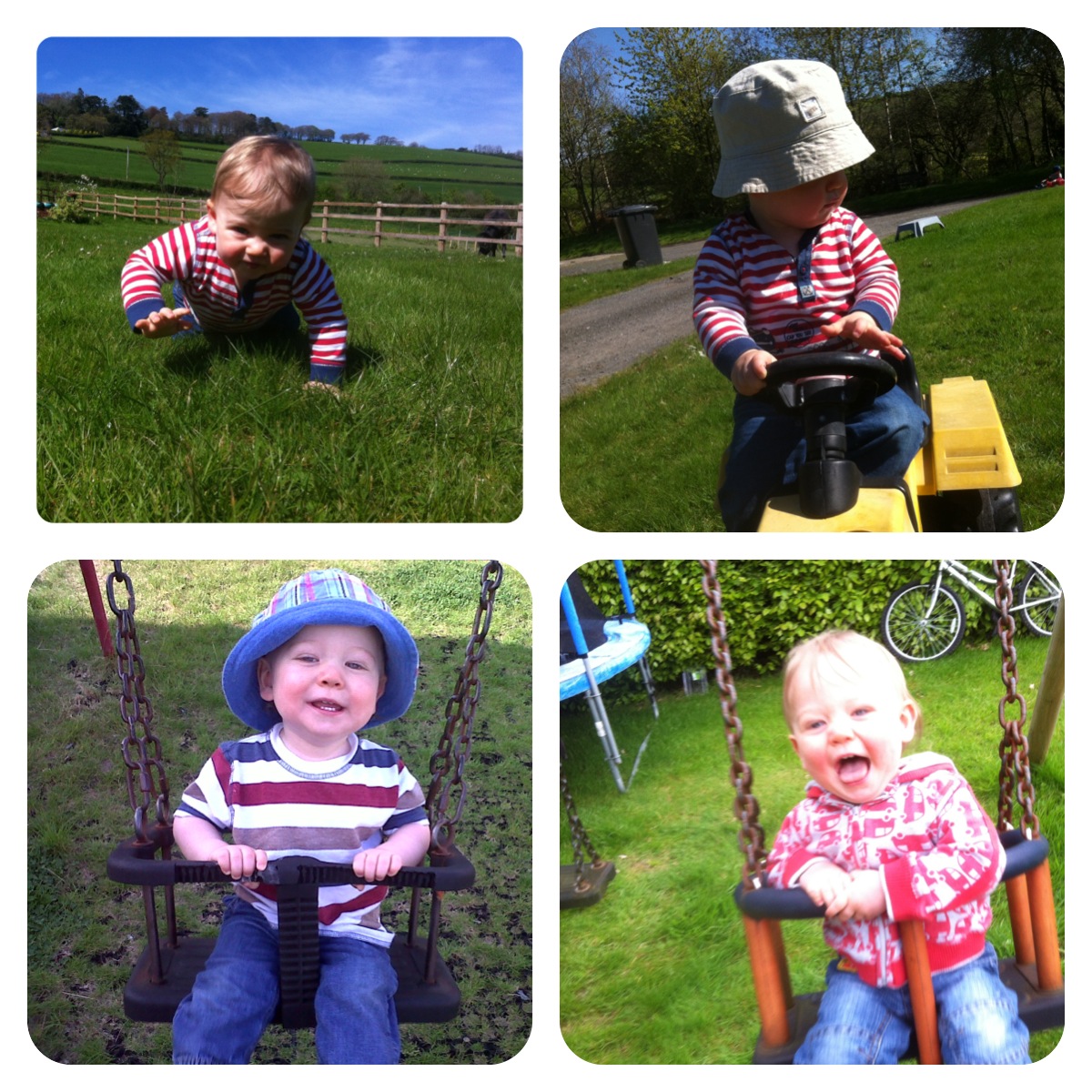 Going down slides and being pushed in a swing