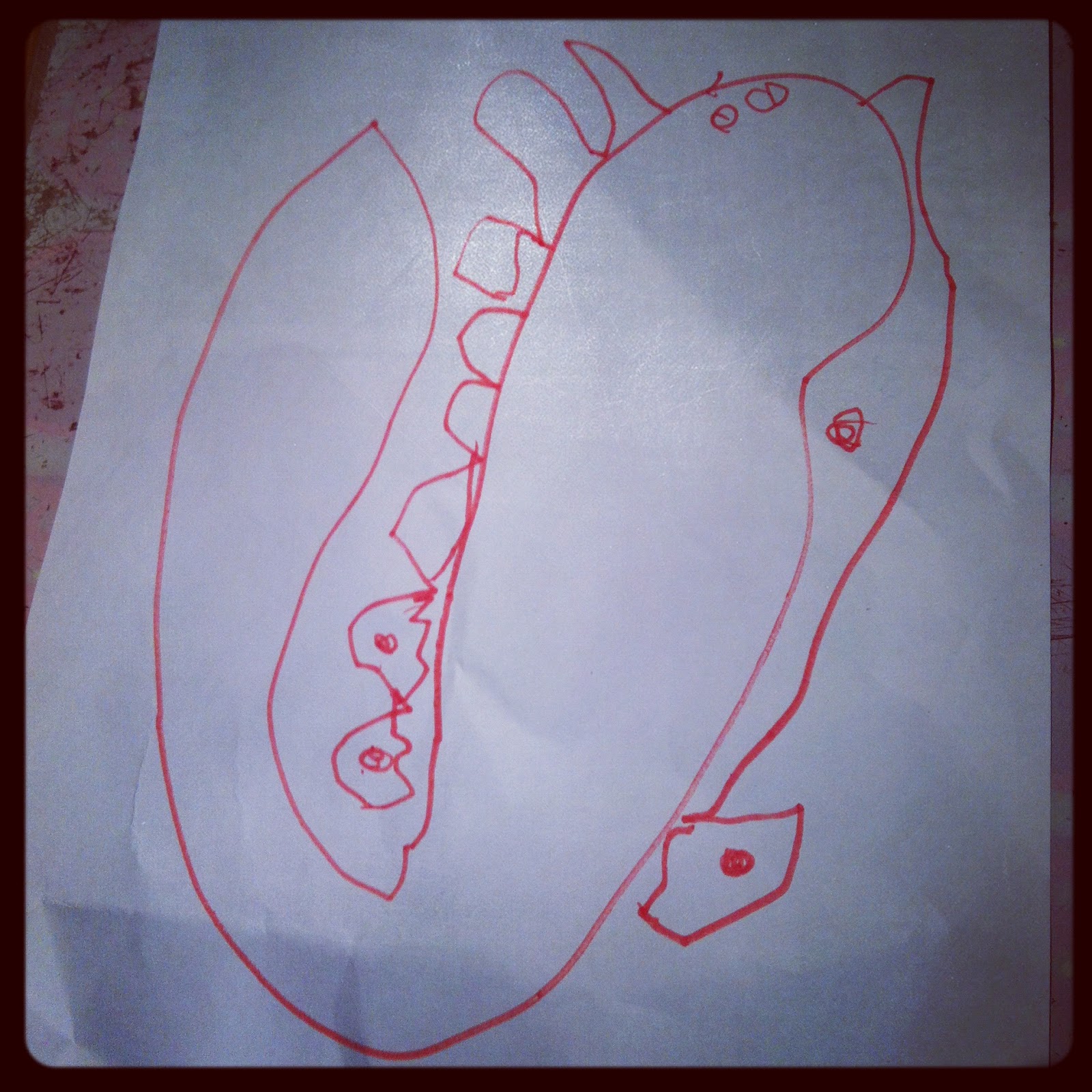 It rained almost all day today so after lunch the boys were a bit bored and I couldnt get Jenson to nap, so we spent an ‘exciting’ *ahem* half an hour in Tesco as I needed to buy a couple of things ahead of my on line delivery tomorrow. Burton drew his first dinosaur which daddy and I think is brilliant!