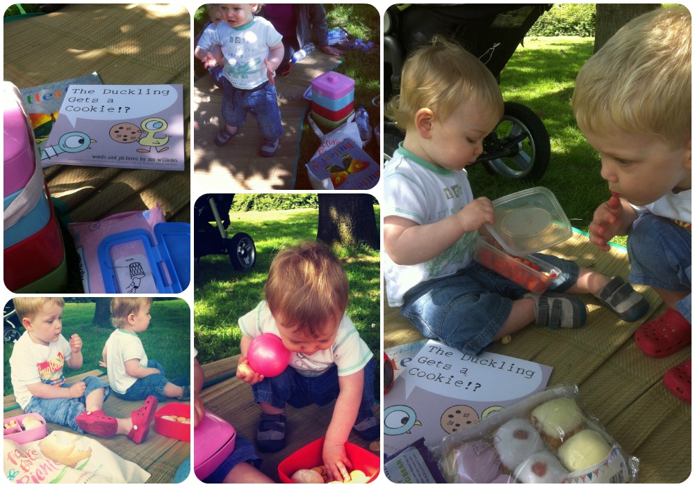 While the boys tucked into their strawberries I read two of the stories to them : The Duckling gets A Cookie by Mo Willems and Butterfly Butterfly by Petr Horacek, both of which I thought were very apt for a picnic in the park.