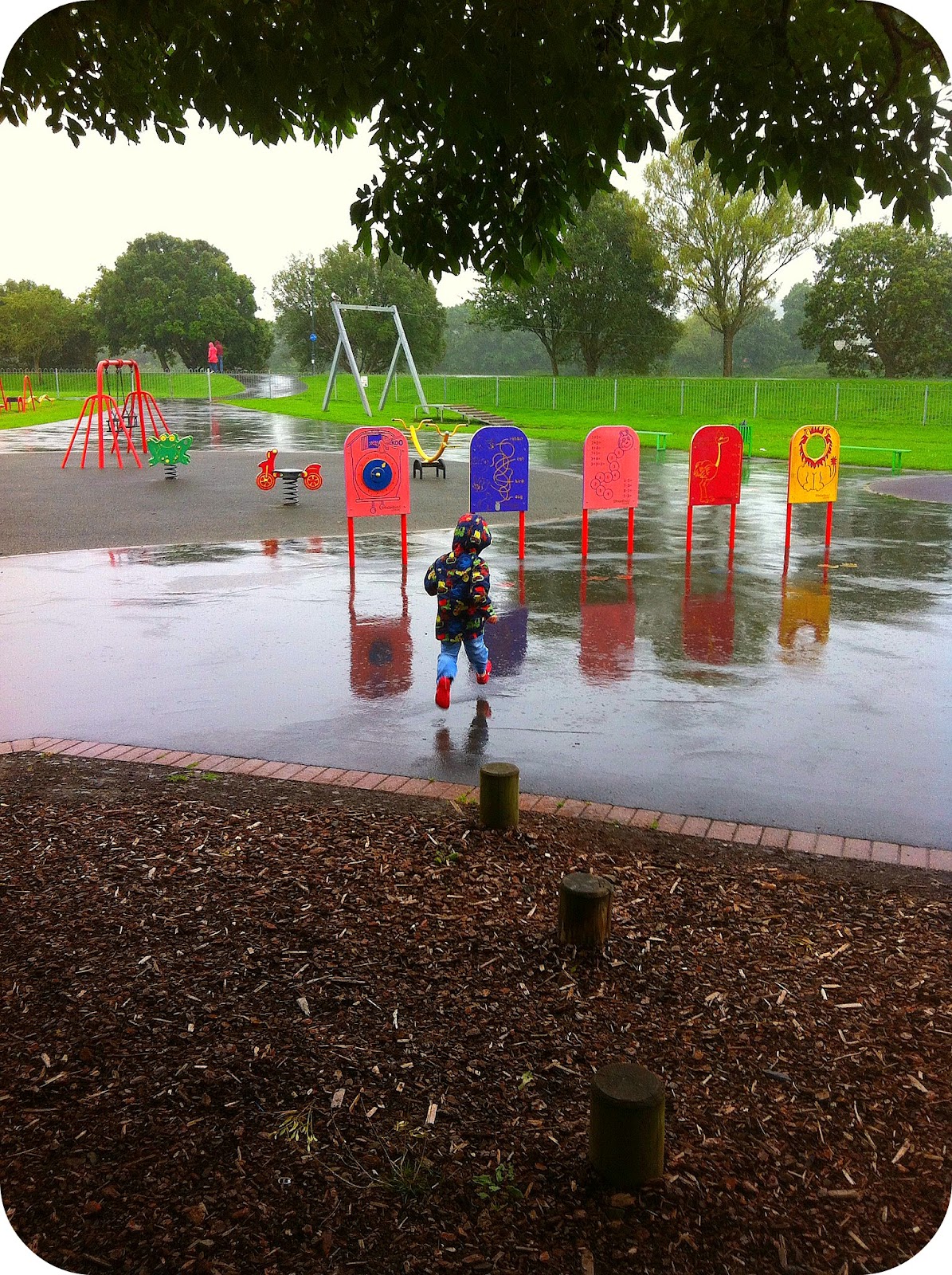 This is so true of Burton and as we approached the park last Tuesday, and the heavens literally opened, I did contemplate retreating back home as quickly as possible. But then I remembered those tweets and I realised that it was me who had the problem with getting wet and not my child. Ok, so I will get wet hair which will look like Crystal Tips as it starts to dry again, and yes my clothes will get wet. Yet does this really matter?