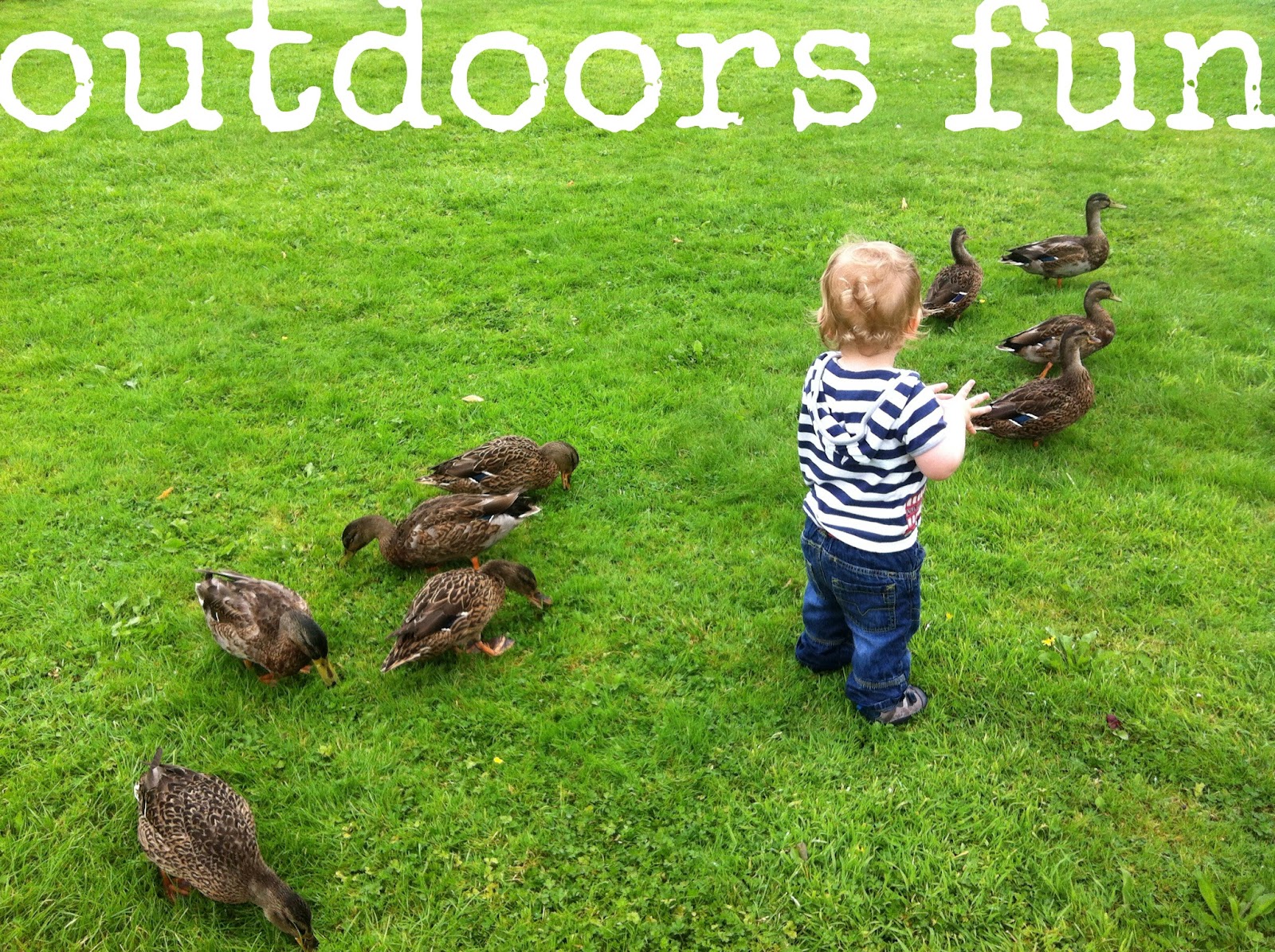 We went to Granma’s and this afternoon we went out to play on the damp grass, swings and trampoline and fed the ducks!