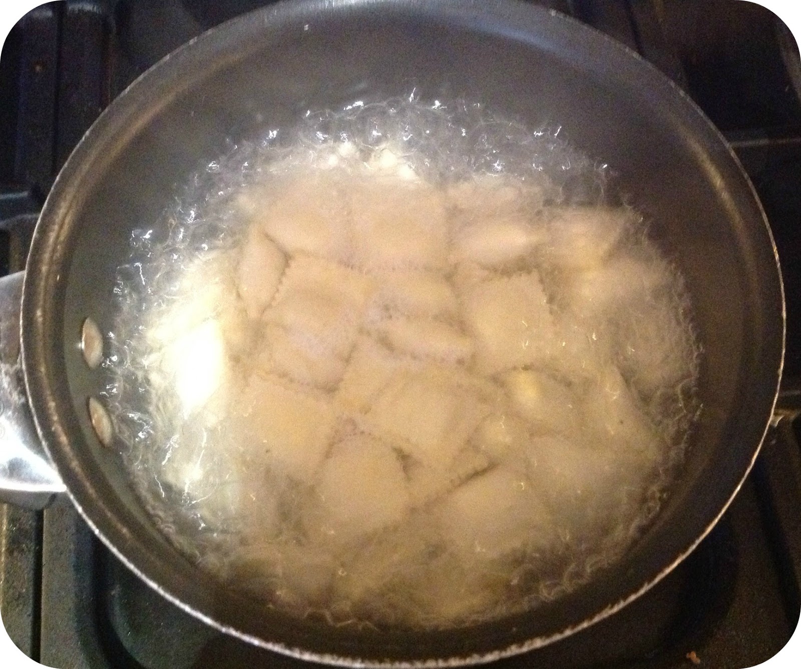 Once cooked, the little square filled pasta parcels plump up and you just need to drain them off before adding your pasta sauce.