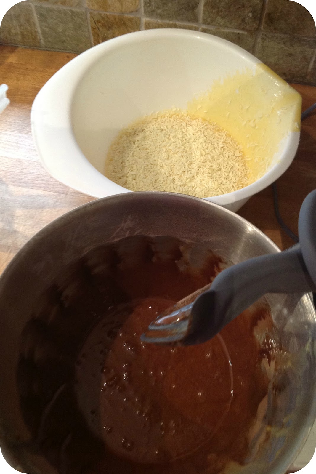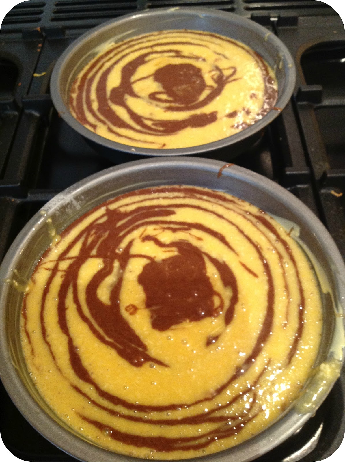 And thats it, a double chocolate cake with a lovely marbled white and milk chocolate effect and flavour.