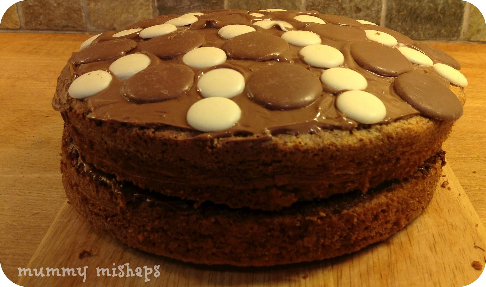Then decorate with your white and milk chocolate decorations – I am using buttons because my children (and OH) likes them!