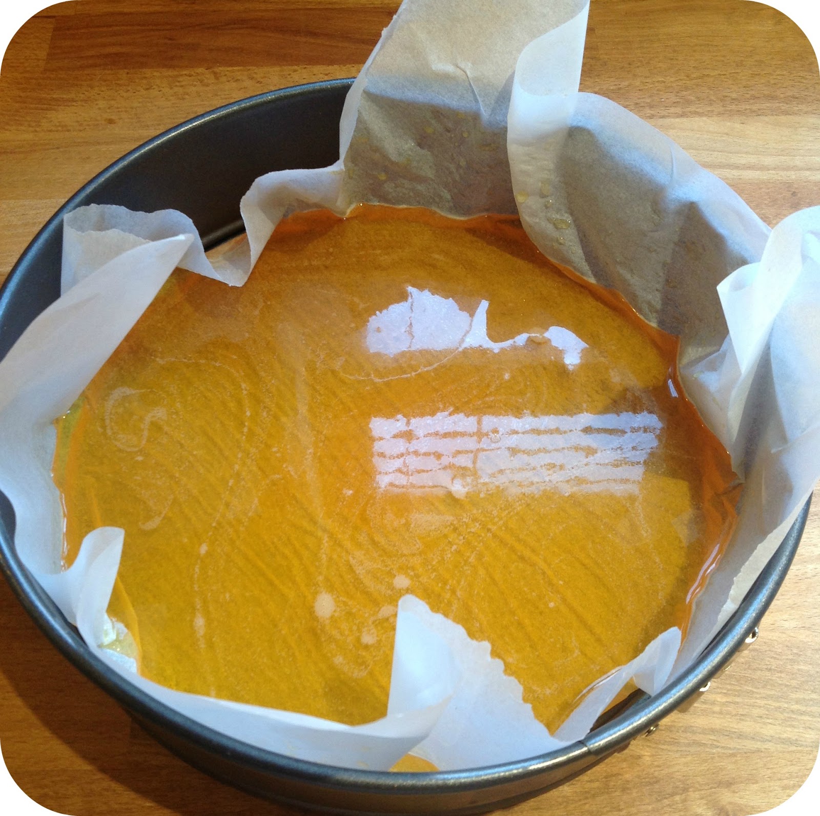 Line a 9inch shallow round cake tin lined with cling film or grease proof paper
