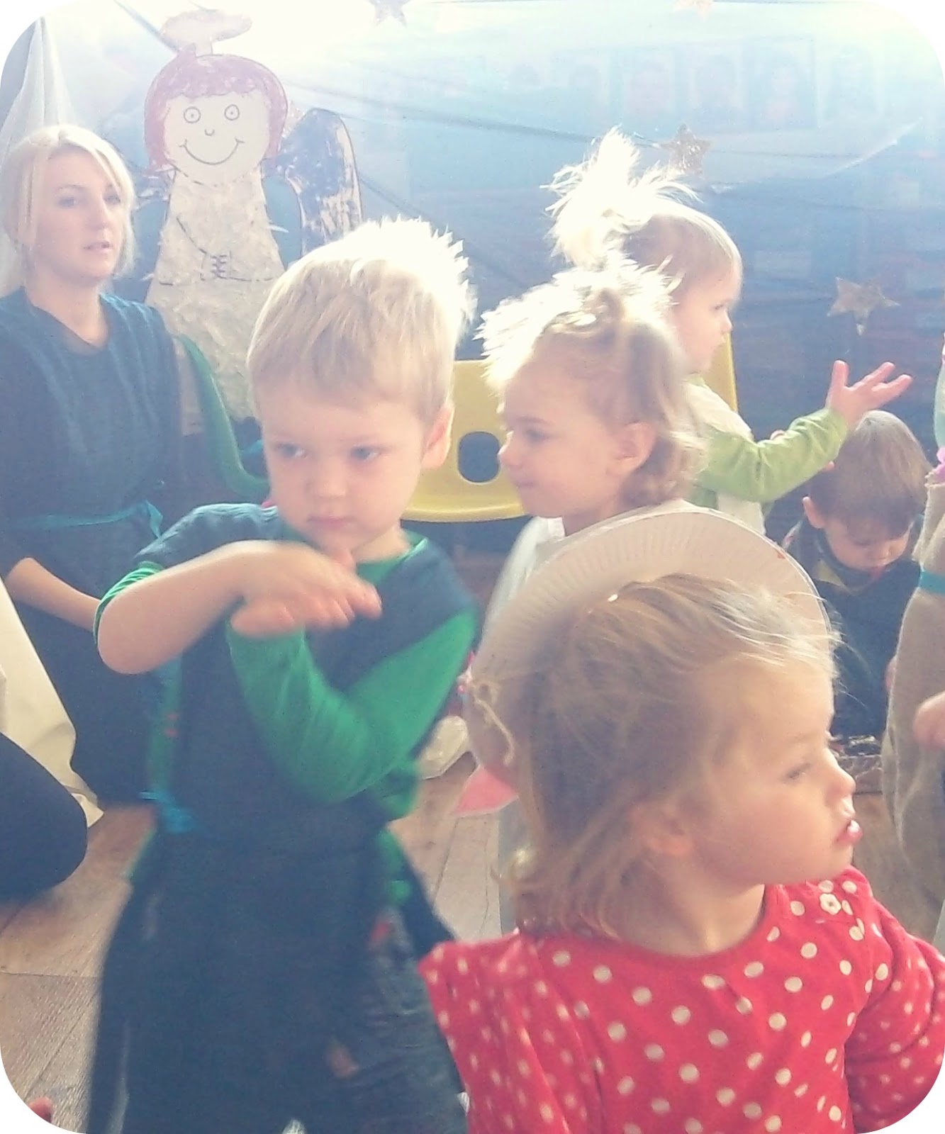 It turns out it actually was a nativity, and it lasted for 15 minutes (all of which I filmed) and the script was done in rhyme and the Ladybirds staff spoke the words as the children just sang and acted *ahem*. All the songs were Christmassy and in keeping with the scenes within the nativity, and were sung to nursery rhyme tunes – which were all original and entertaining with actions to go along with the words. The only traditional song was Away In A Manger. It was funny though because some children were crying, some ended up walking off stage and sitting with their parents and a couple discarded their costumes within a few minutes of the play starting!Β