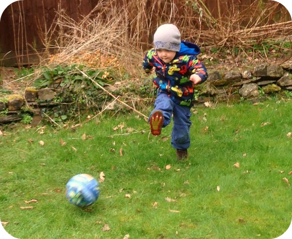 Well done you on all your outdoor play, you are amazing! The kicking shot is great showing off the Dinosoles (The Boy is gutted that he’s outgrown them, I think I’m going to have to *buy* some for his next pair of shoes!) and I adore Jenson’s laidback position in the pushchair. Good work on the Ferrero Rocher cake, I am nabbing that for hubby’s birthday in a few weeks time!