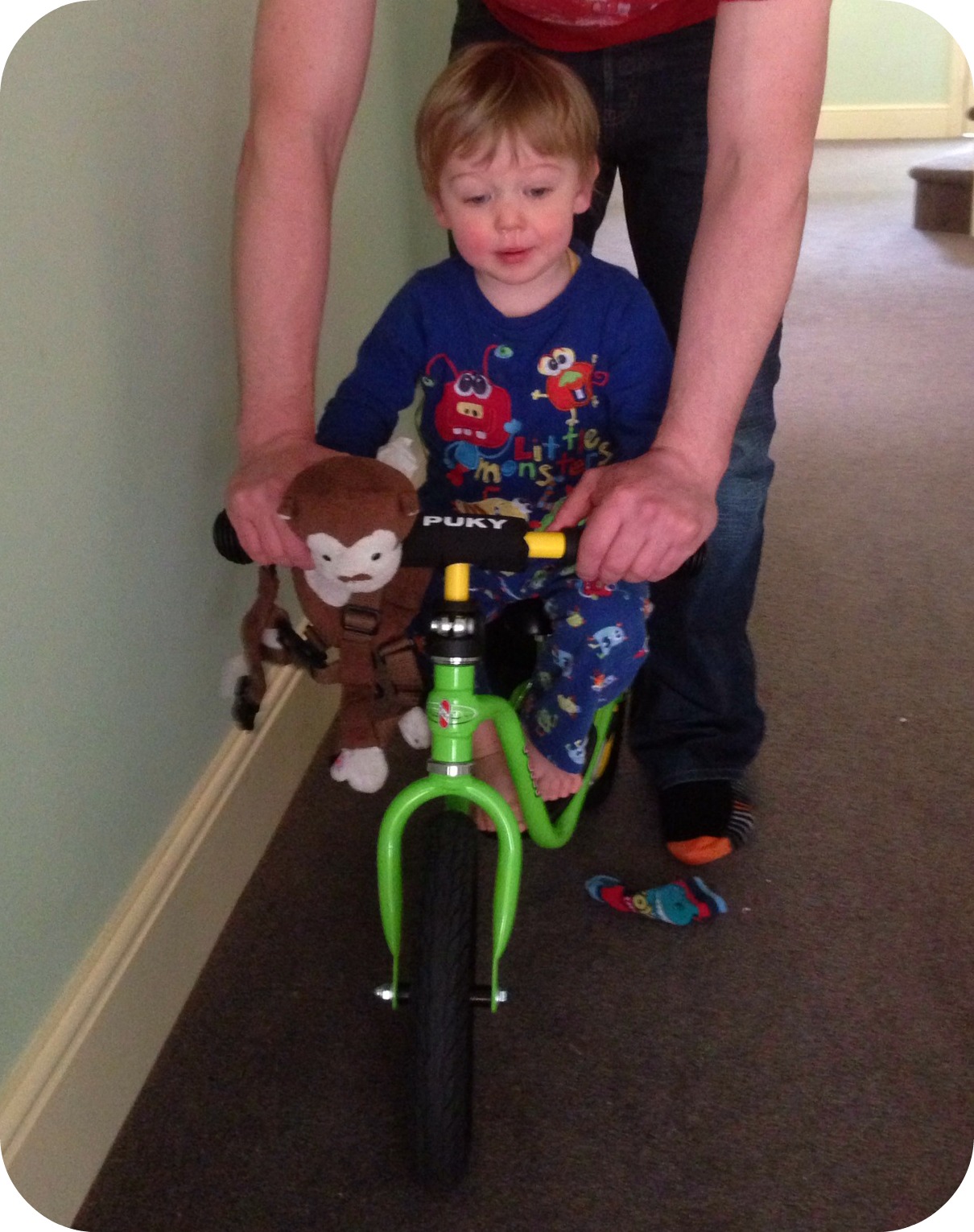 Last Saturday Jenson turned two years old. Daddy, Burton and I were up before he was, so we waited until we heard him talking and then brought him down to open his presents and see all his balloons. We bought him a balance bike just as we did for Burton on his second birthday.
