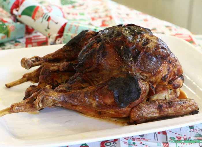 Despite what the cooking guidelines might say on the turkey packaging, always check your turkey regular, as I aways find that my turkeys cook in less time than stated. Overcook it and your turkey will be dry. Also, if you think your turkey skin is browning too quickly, cover loosely with foil for the last part of the roasting time.
