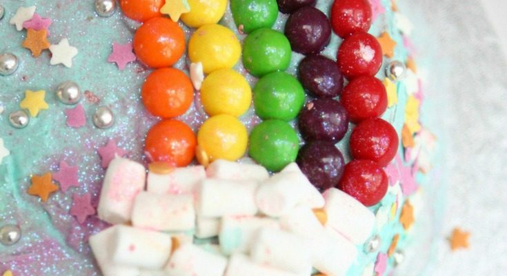 Recipe by Mummy Mishaps at http://www.mummymishaps.co.uk/2017/08/skittles-rainbow-cake.html