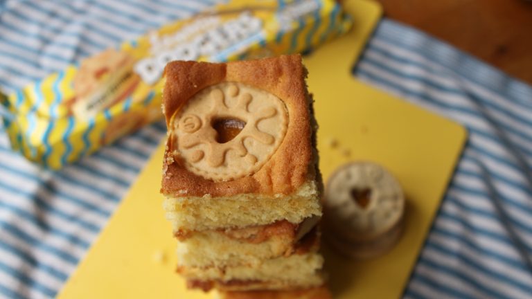 Recipe by Mummy Mishaps at http://www.mummymishaps.co.uk/2018/06/lemon-jammie-dodgers-traybake.html