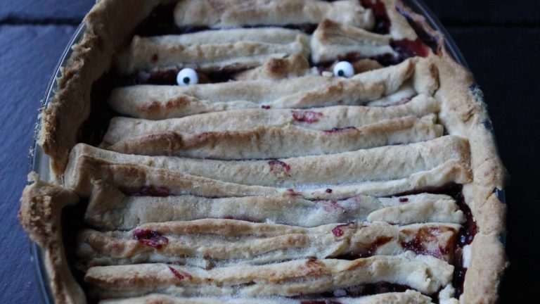 Recipe by Mummy Mishaps at http://www.mummymishaps.co.uk/2018/10/cherry-and-chocolate-mummy-pie-gbbo-pastryweek.html