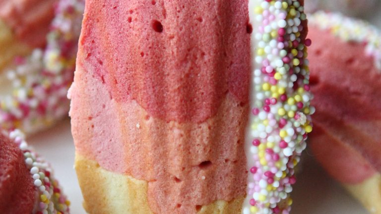 Recipe by Mummy Mishaps at http://www.mummymishaps.co.uk/2018/10/pink-ombre-madeleines-gbbo-patisserieweek.html