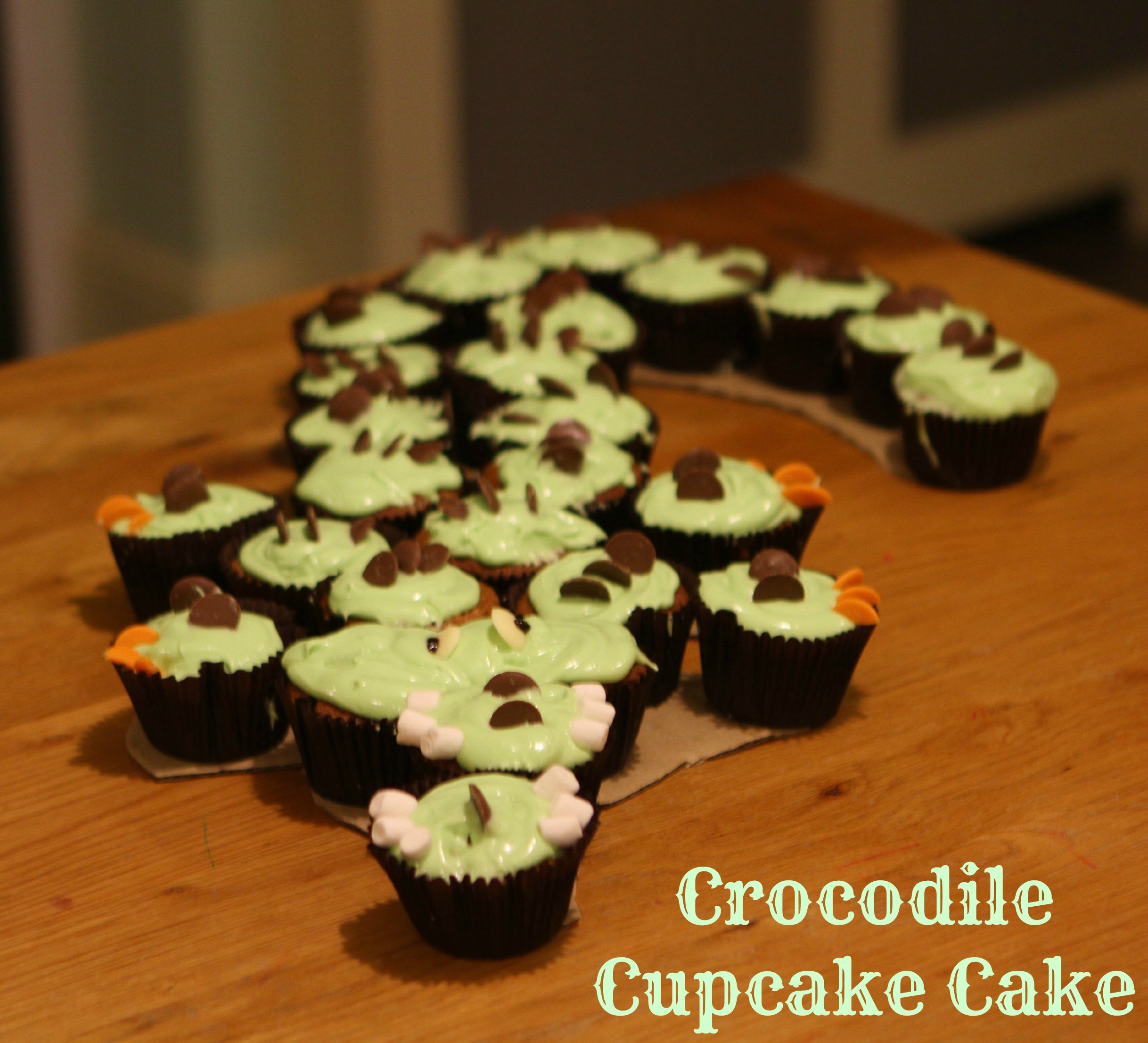 Recipe by Mummy Mishaps at http://www.mummymishaps.co.uk/2013/11/crocodile-cupcake-cake.html