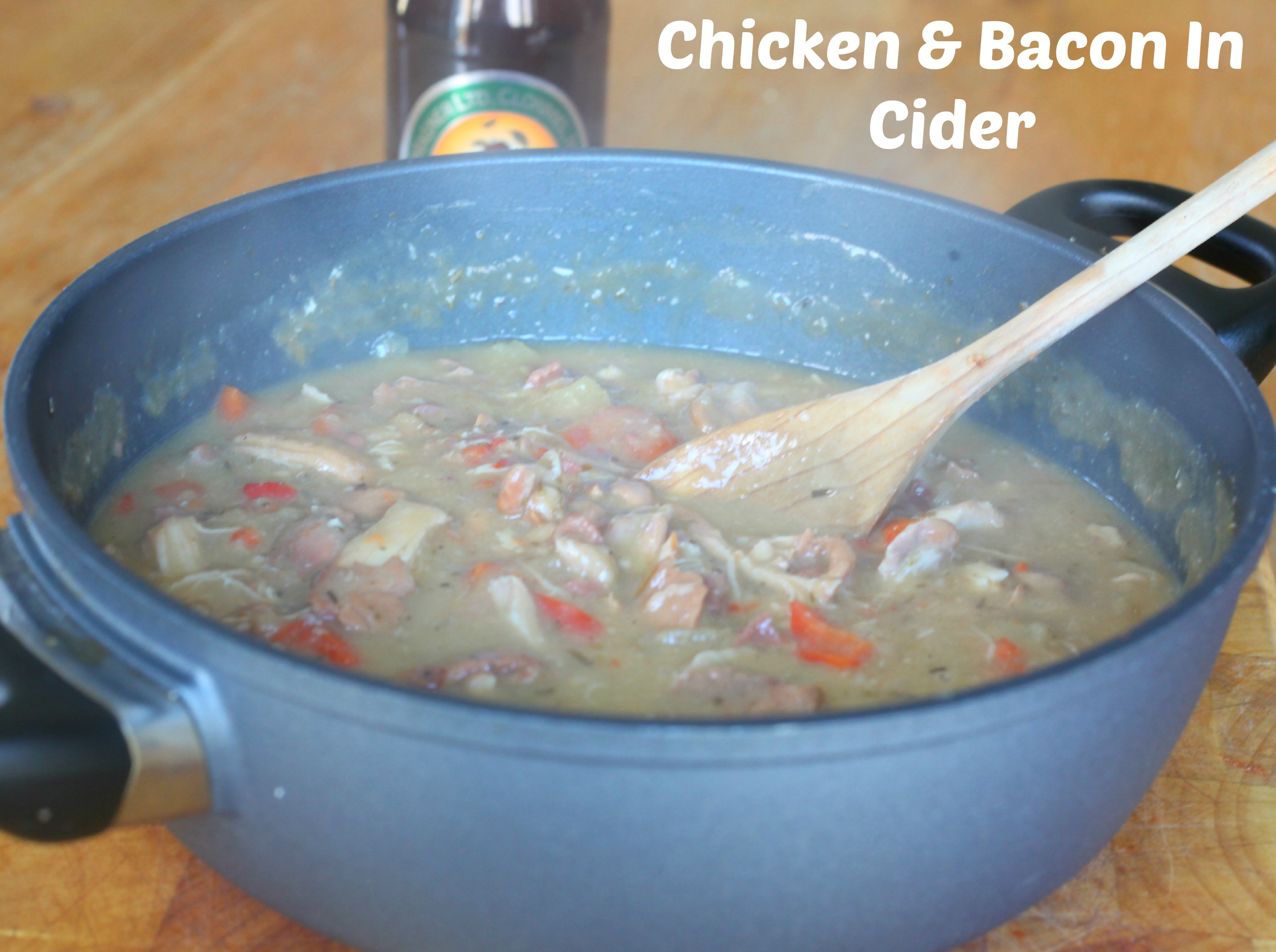 Recipe by Mummy Mishaps at http://www.mummymishaps.co.uk/2014/01/chicken-bacon-in-cider-52-cookbooks.html