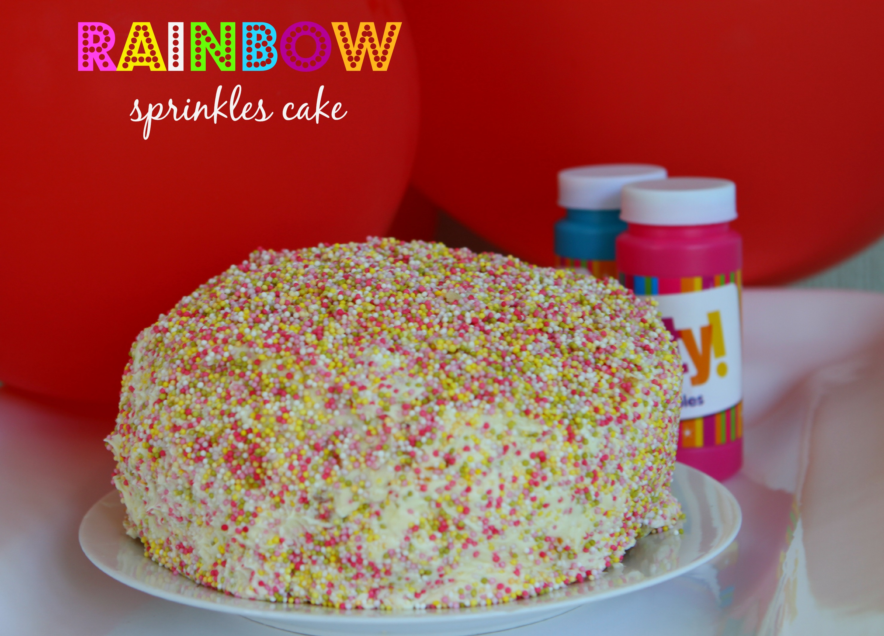 Recipe by Mummy Mishaps at http://www.mummymishaps.co.uk/2014/06/rainbow-sprinkles-cake.html