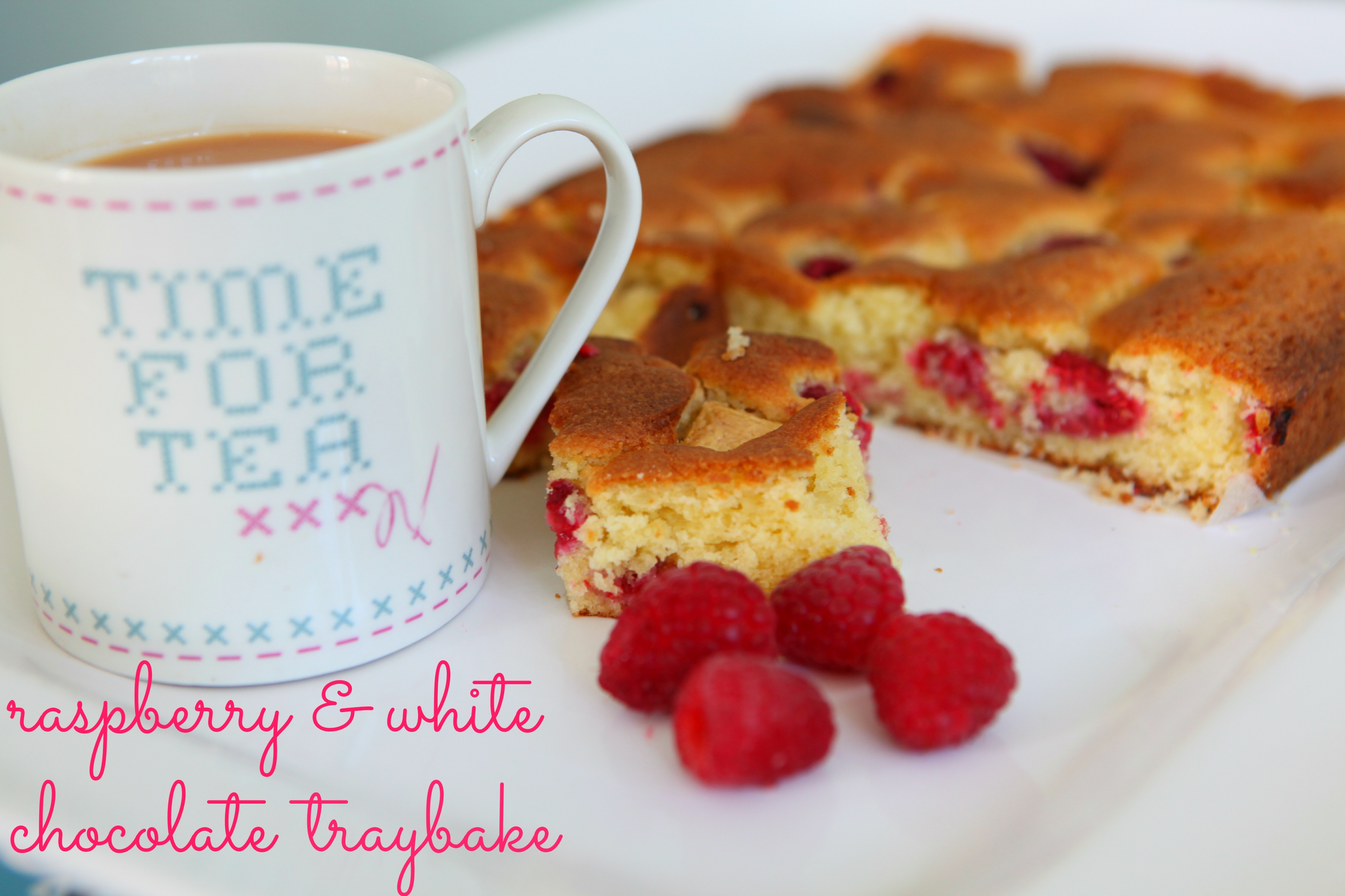 Recipe by Mummy Mishaps at http://www.mummymishaps.co.uk/2014/07/raspberry-white-chocolate-traybake.html